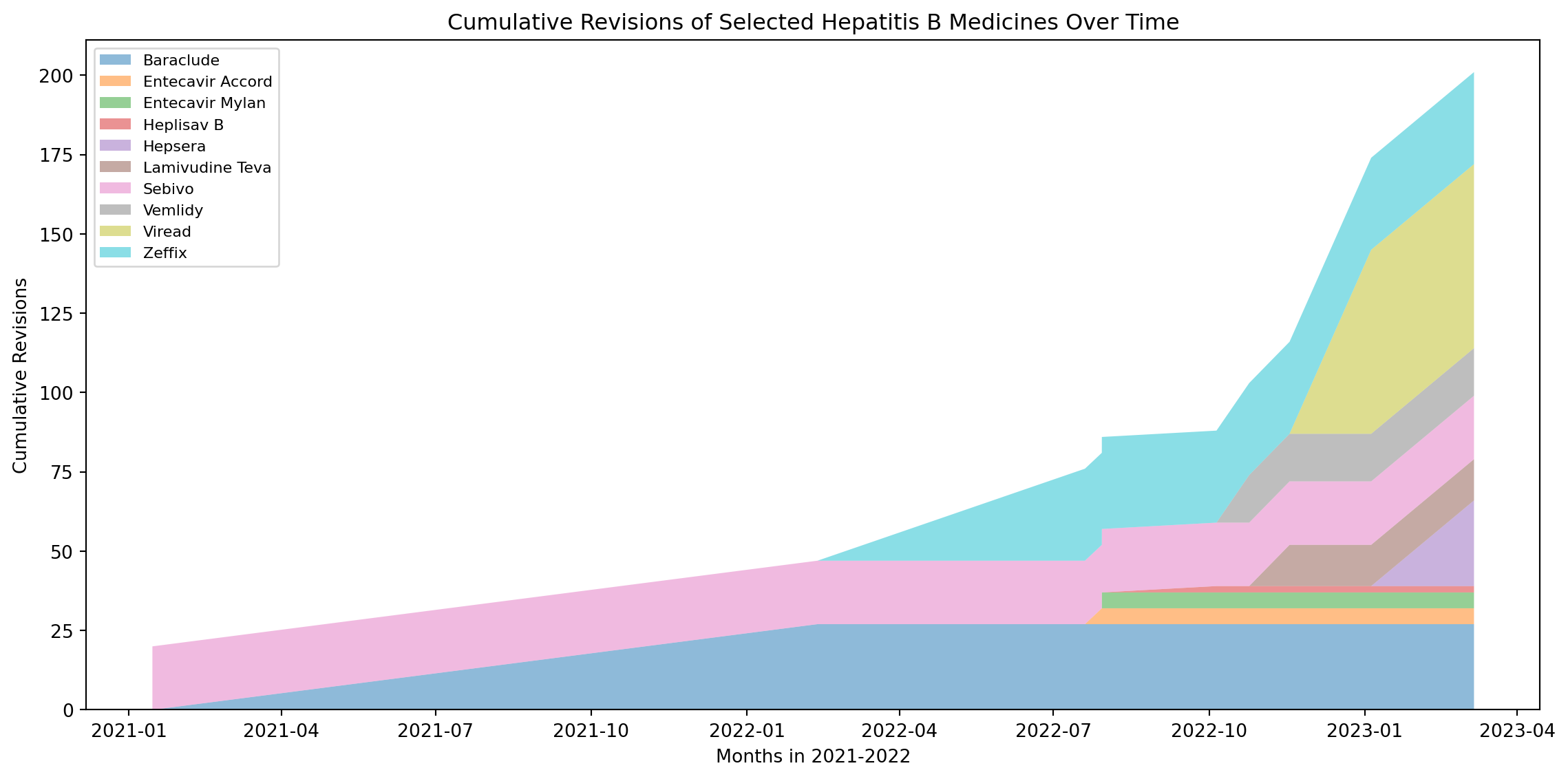 1. Filtered the dataset to include only medicines related to ‘Hepatitis B’ in the ‘therapeutic_area’ variable.