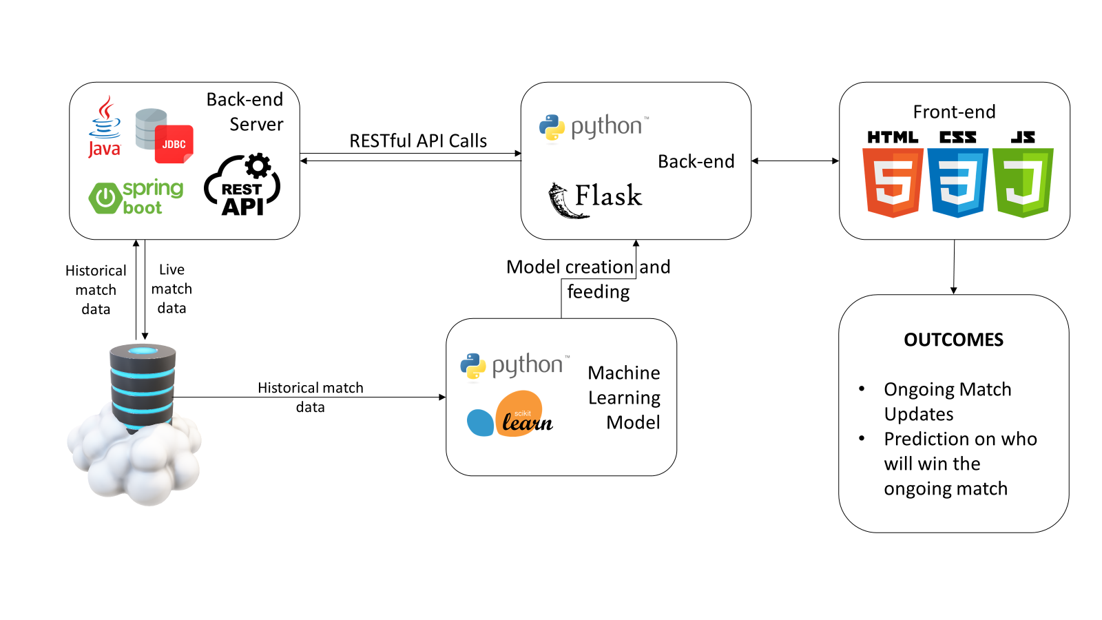The primary goal of our project is to use past and current match data, train them under regression classification models, select the best model and then use it to predict the winner of a cricket match based on the live match statistics (e.g., runs scored, wickets fallen, overs bowled), that update at regular intervals.