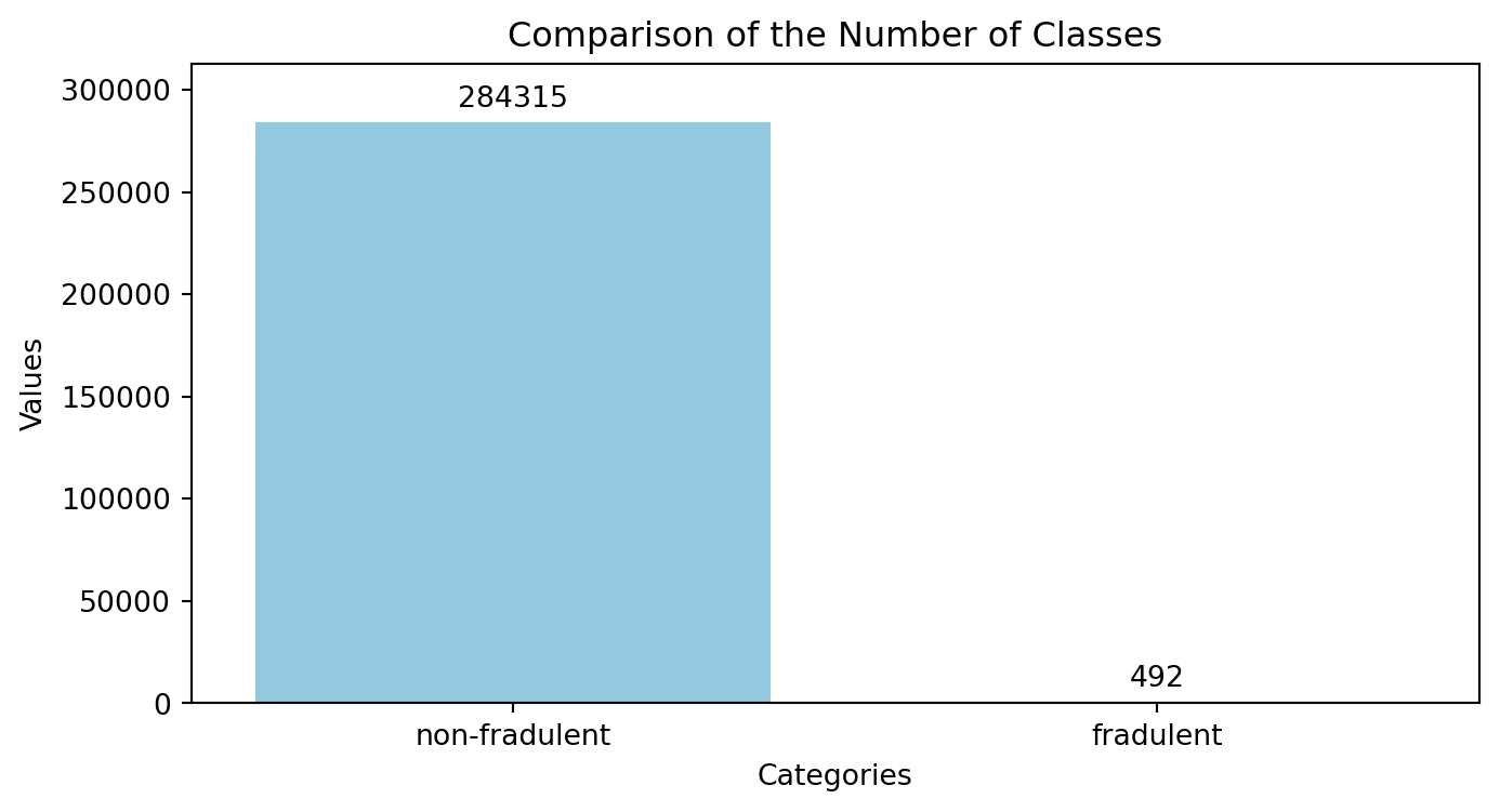 | 3 | 1.0 | -0.966272 | -0.185226 | 1.792993 | -0.863291 | -0.010309 | 1.247203 | 0.237609 | 0.377436 | -1.387024 | ... | -0.108300 | 0.005274 | -0.190321 | -1.175575 | 0.647376 | -0.221929 | 0.062723 | 0.061458 | 123.50 | 0 |